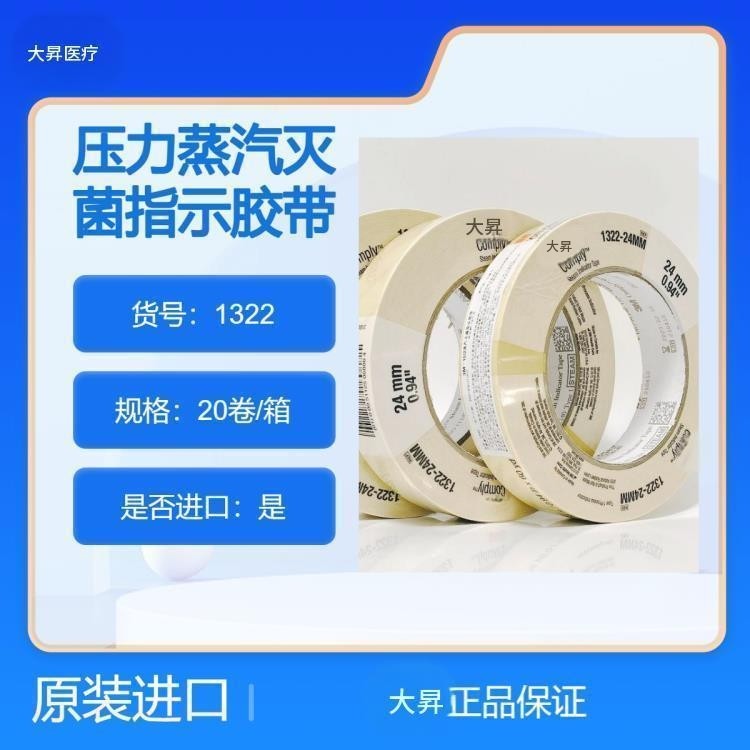 本品用于压力蒸汽灭菌的化学指示胶带。斜型条纹内含特殊热敏染料,在121℃15min~20min或134℃3min作用条件下由米白色变为黑色,如变色不均匀或不彻底则提示该包裹未经过符合条件的灭菌处理。本品可起固定封包作用,遇水时染料不易受损,并可书写记录,灭菌后颜色不易退去。注意:如发现产品粘性不足或没有粘性,切勿使用。